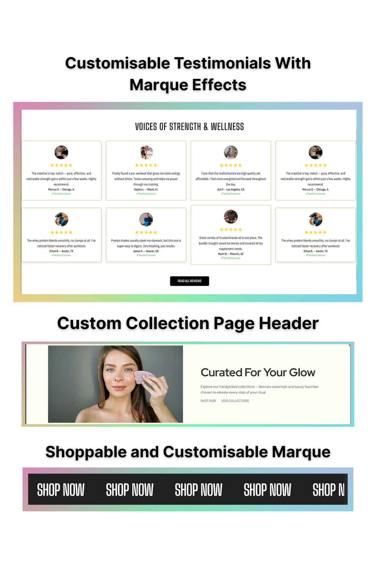 • Shoppable Video Section: Engage visitors with video content to boost conversion.