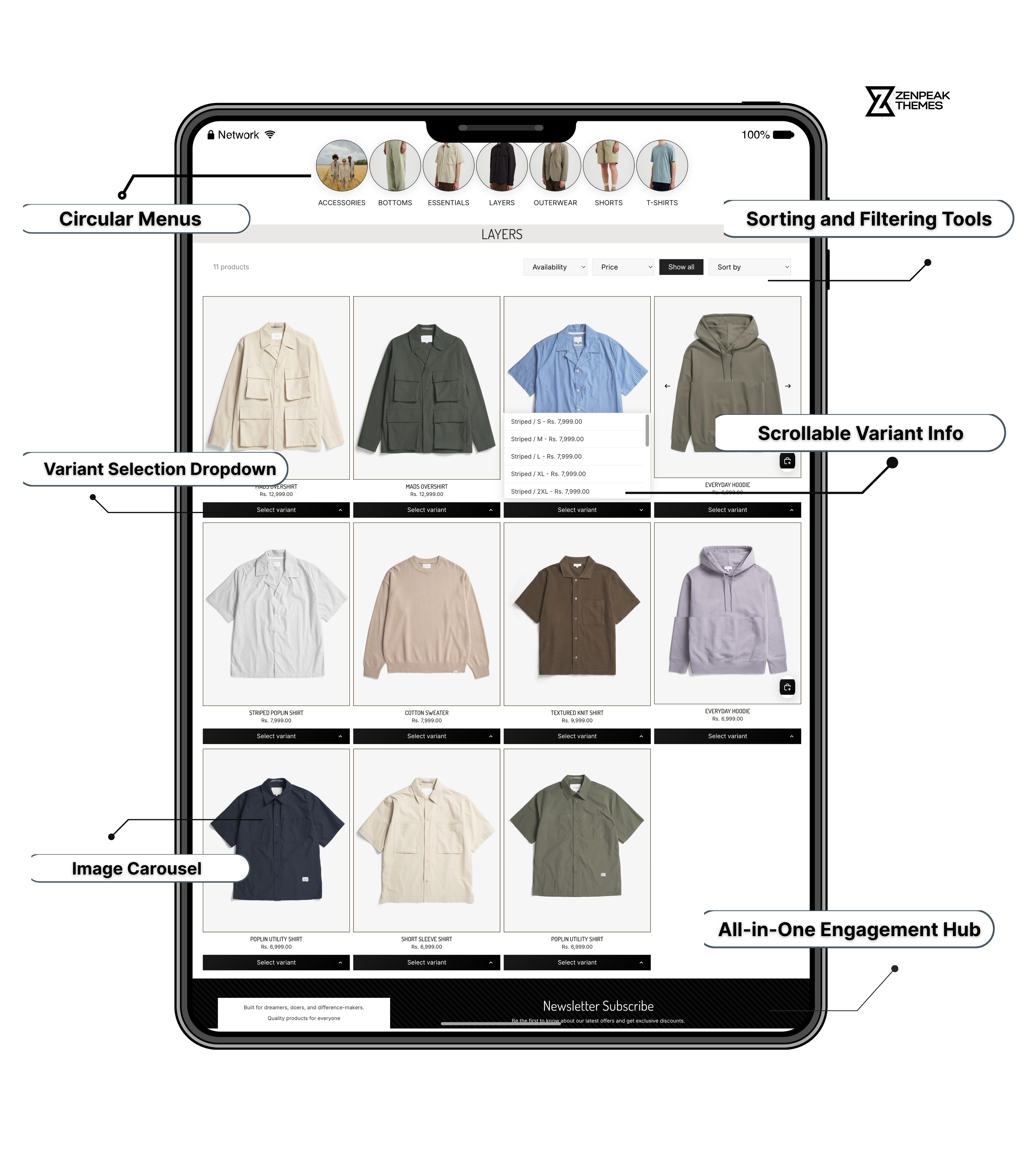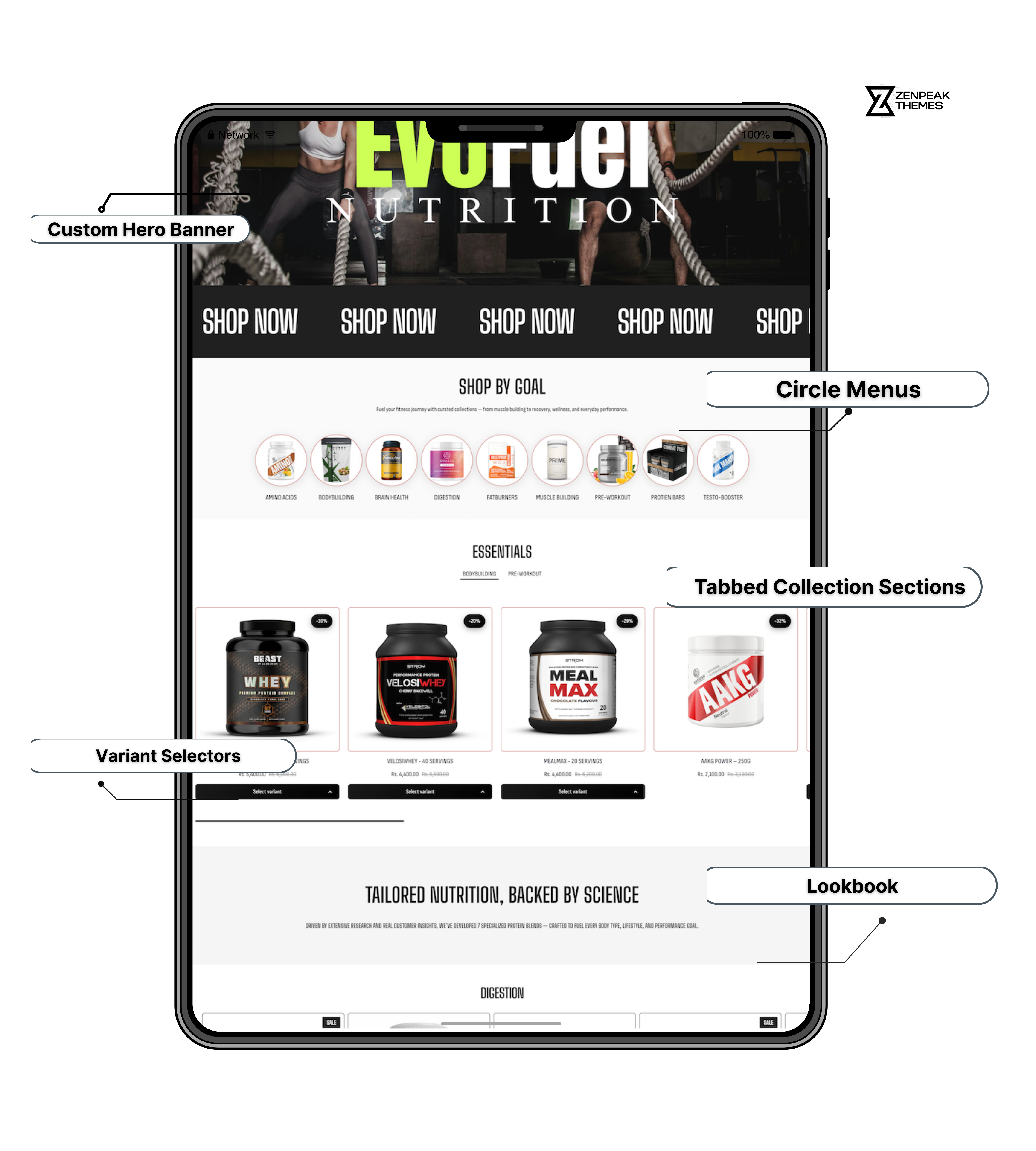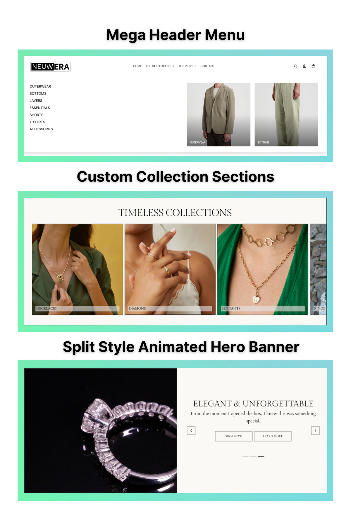 • Tabbed Collection Showcase: Highlight collections in easy-to-navigate tabs.