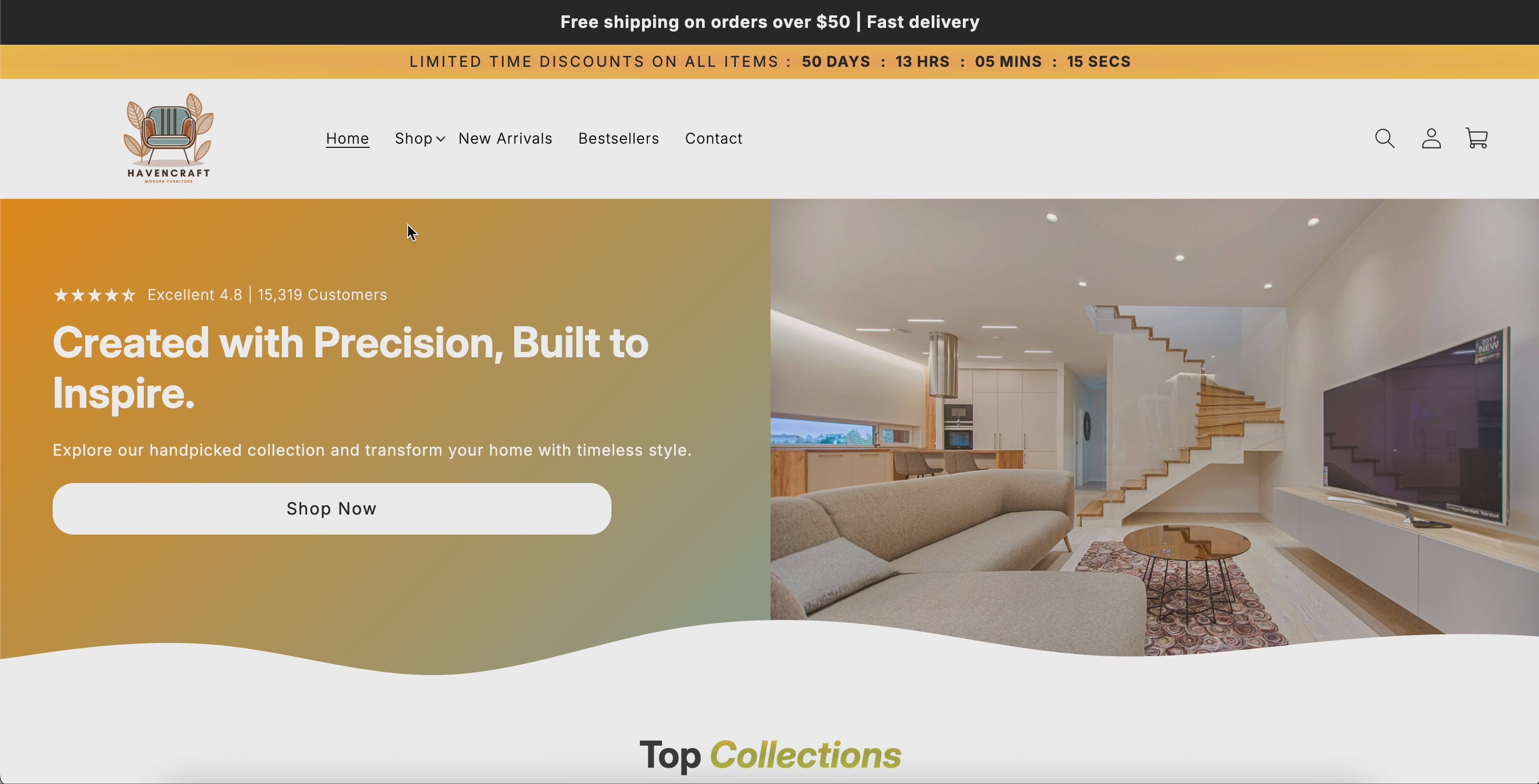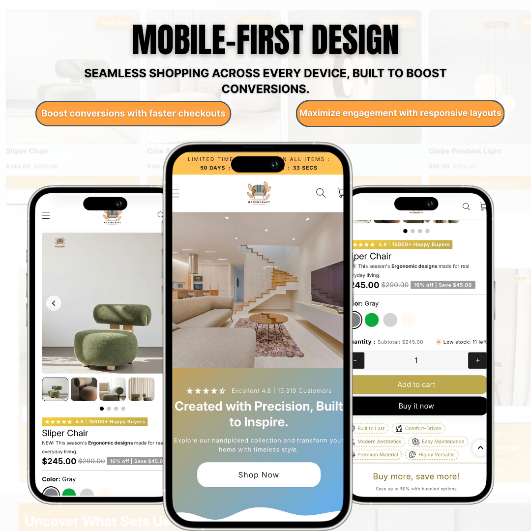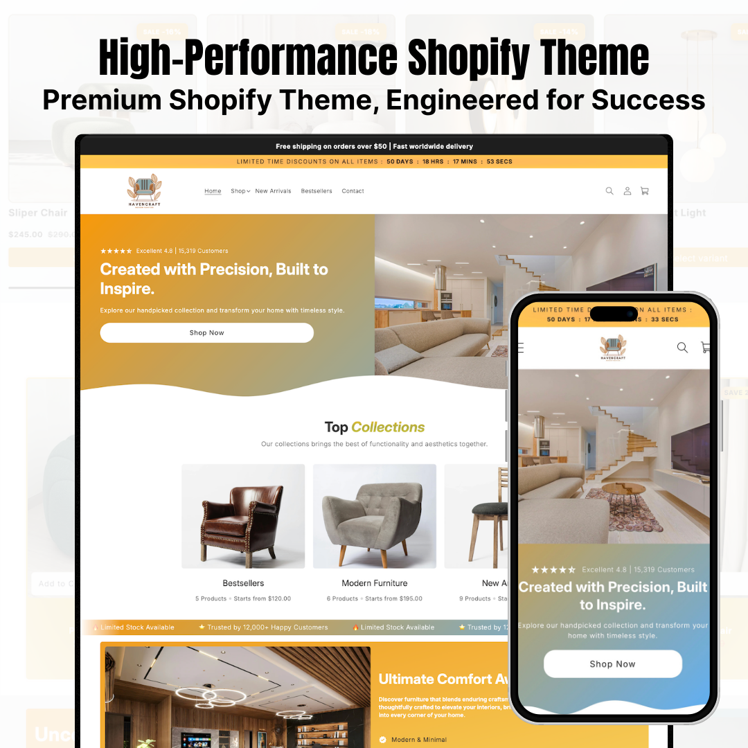 Whether you're showcasing luxury sofas, designer lighting, or artisan décor pieces, HAVENCRAFT combines beauty and performance to help your brand stand out while driving consistent conversions.