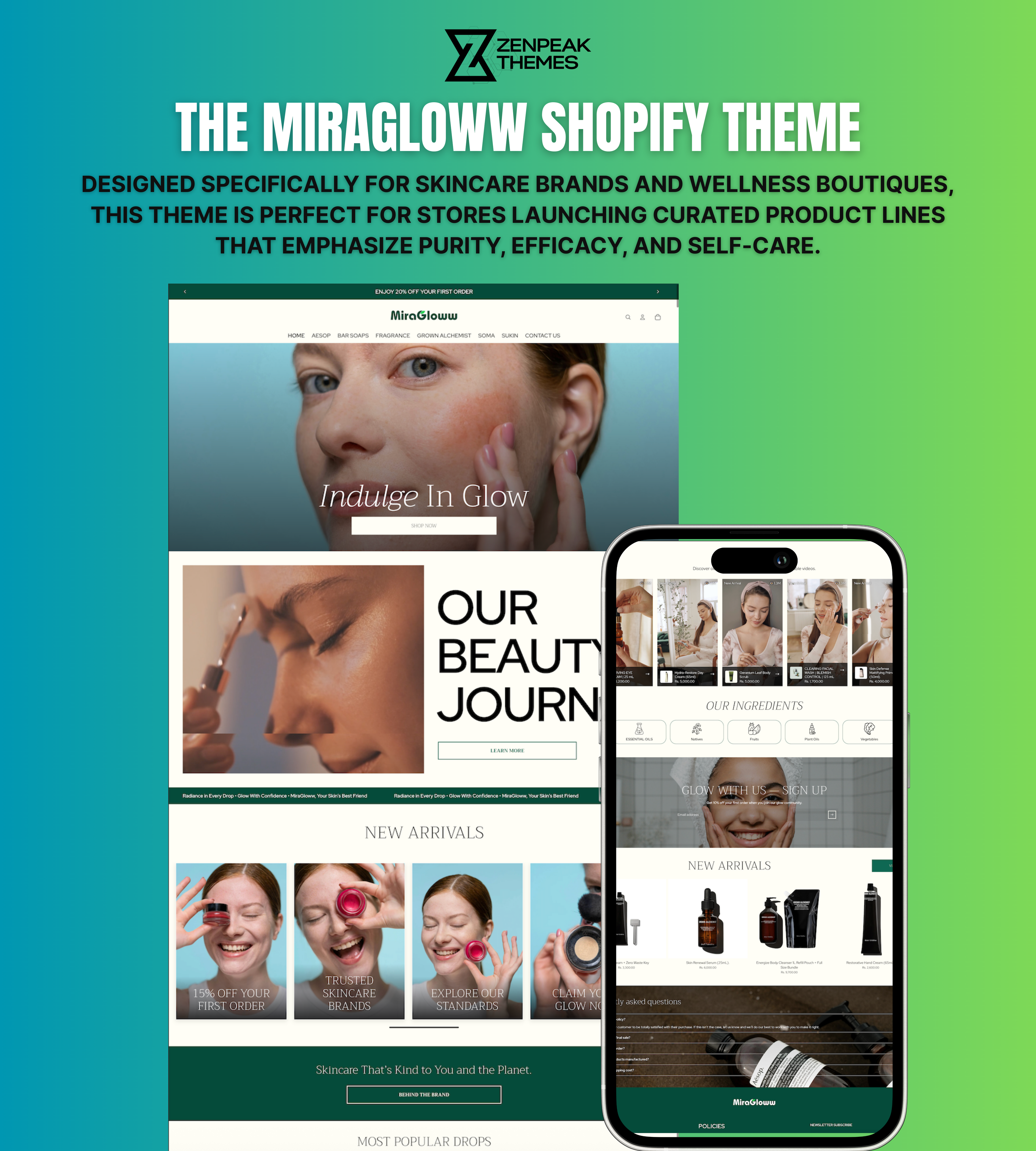 If your brand’s mission is glow, MiraGloww makes every visitor feel at home in their self-care journey.