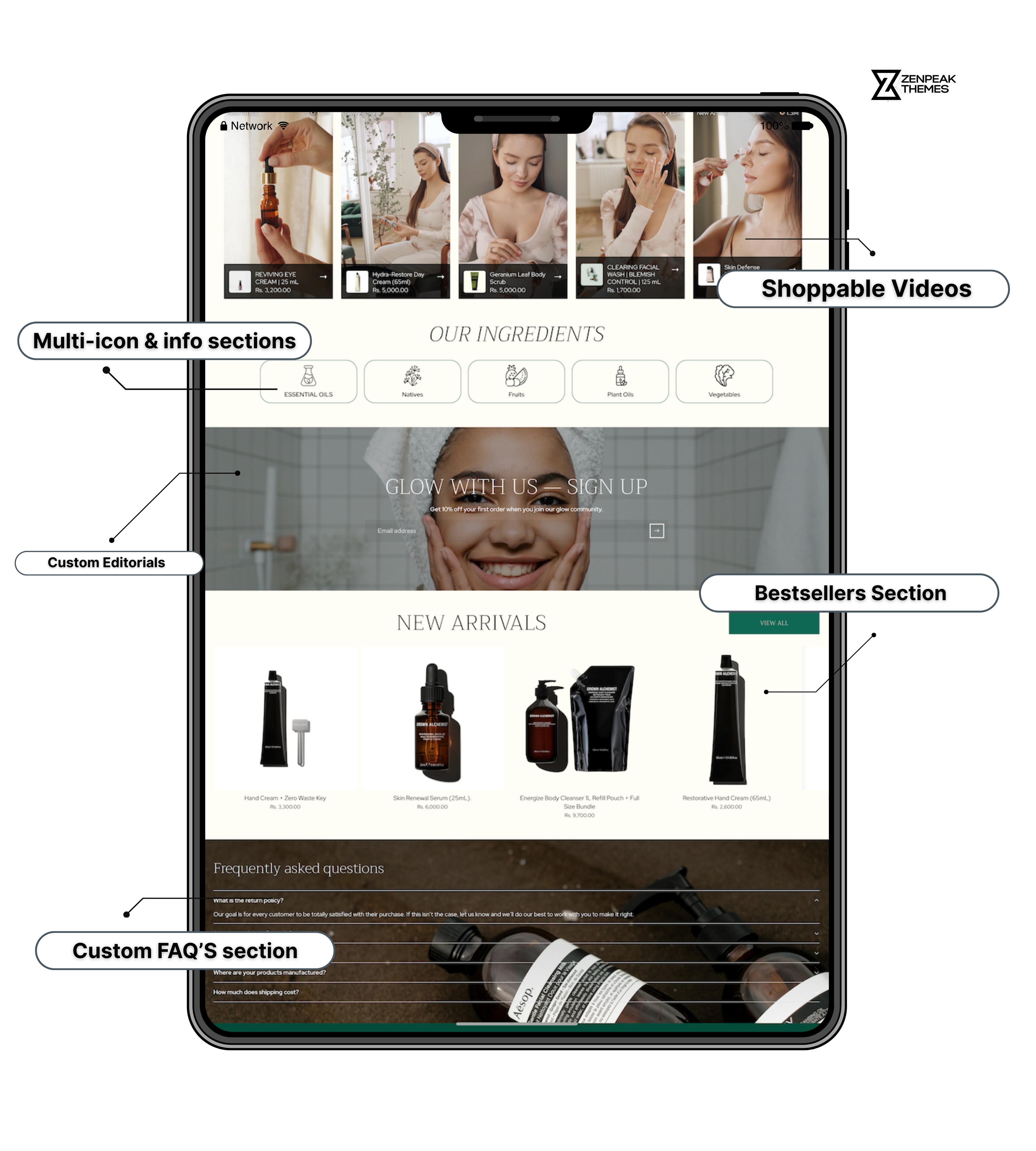 • Inbuilt Product Gallery: Effortless browsing of featured skincare essentials, making discovery easy.